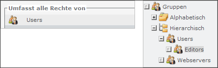 Die Gruppe 'testgroup' besitzt nun auch die Rechte der Gruppe 'Users'.